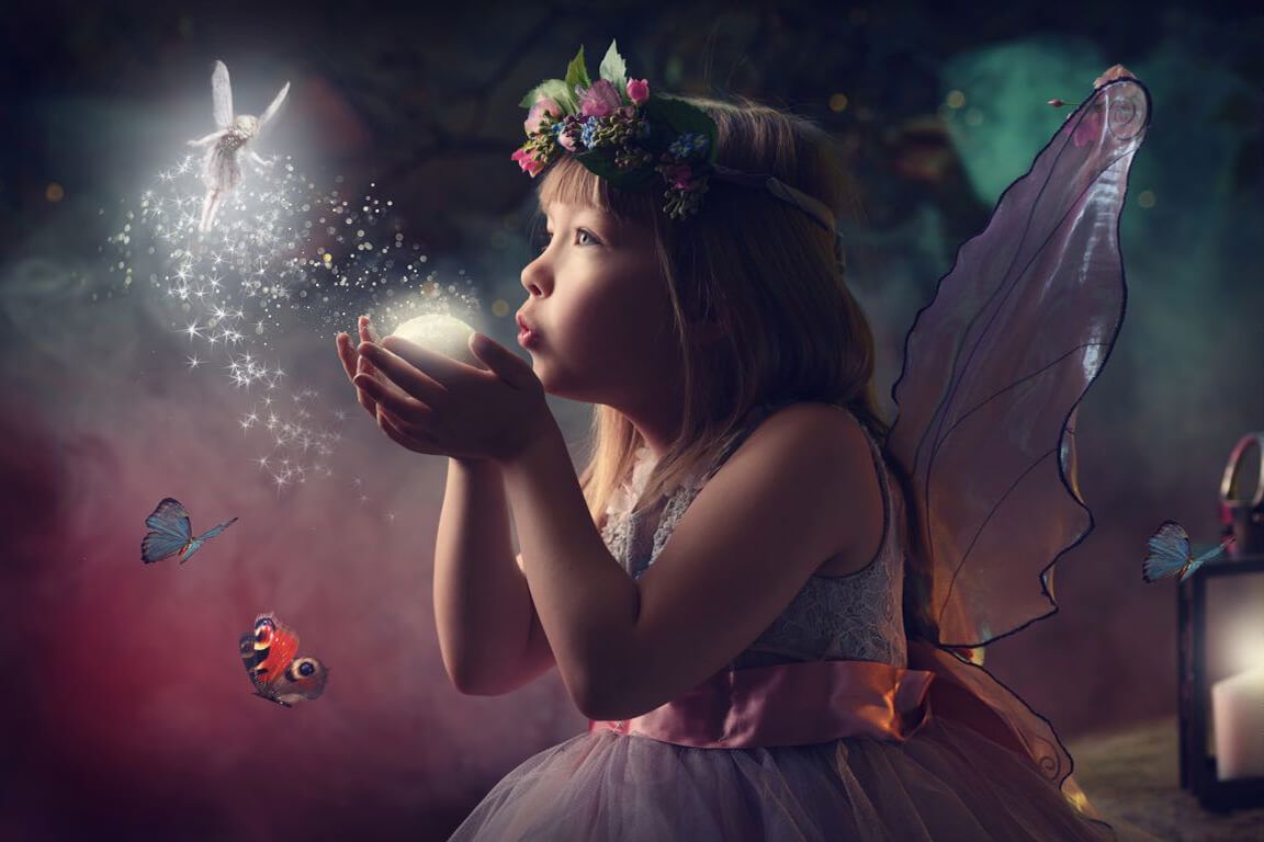 The whole look is often “dreamlike” with a few fairies and butterflies appearing into the scene as if by accident.